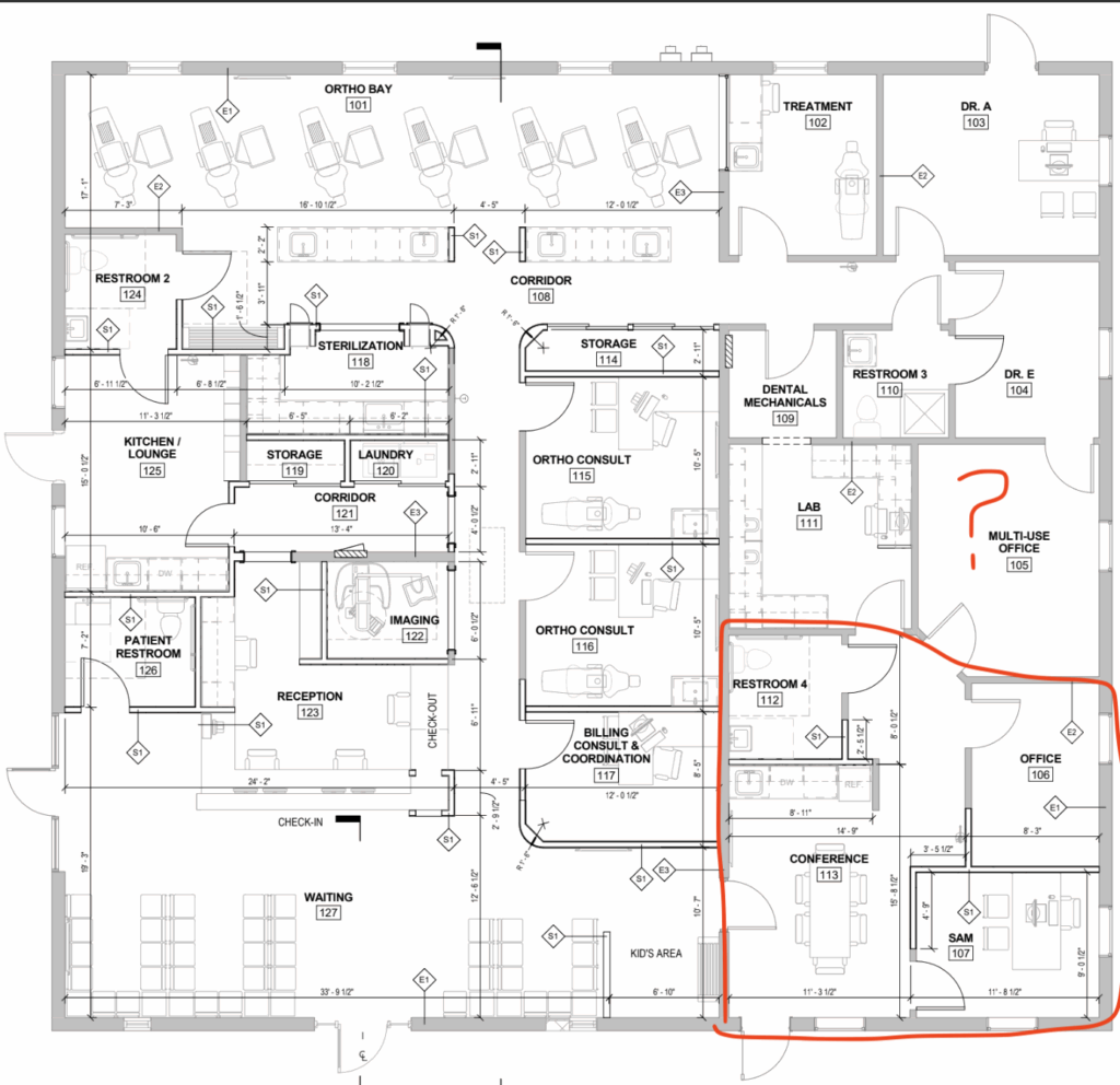 Suite 101: 5 private offices, 2 restrooms, 2077 SF, NNN, Dental/ Medical/ Office space in the heart of Gunbarrel Road, ground floor, wheelchair accessible & move in ready. Completely repainted inside and outside. Great Location: Level lot with great visibility and access to North and Southbound traffic, directly across the street from Whole Foods, Target and Panera Bread between First Watch and Raising Cane's Chicken Fingers. One block from Erlanger East Hospital, couple blocks from CHI Memorial Hospital, and just a few blocks from Hamilton Place Mall and some of the best medical offices, restaurants and shopping in the area. Great parking, and great road signage available to tenant. Covered outdoor breezeway with seating. Previously occupied by an orthodontic practice. Current layout would be good for dental, med spa, chiropractor, physical therapy, etc. but could be reconfigured to accommodate any office/ medical business. Click here for Floor Plan and more information.